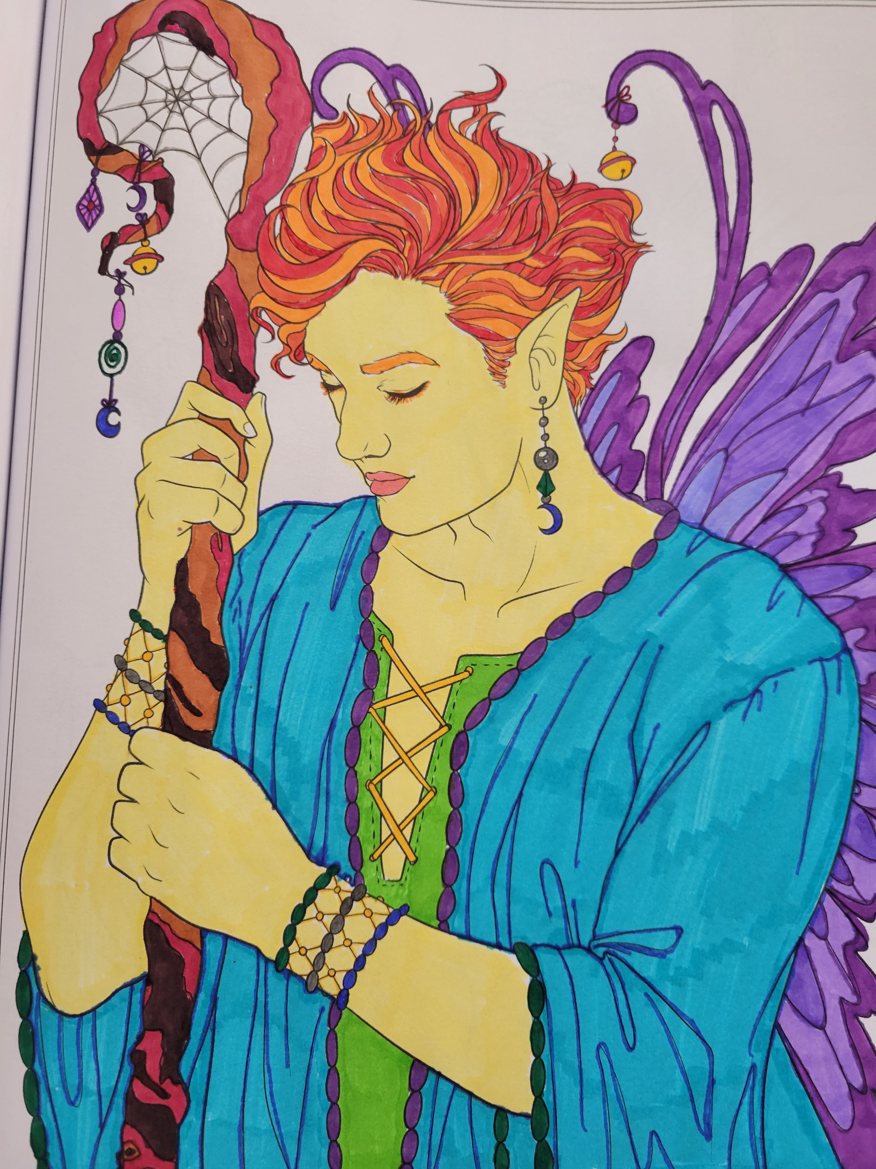 Here is another side thing I worked on, just for fun – coloring! I got 2 fantasy coloring books for adults, art by Selena Fenech. Here’s what I colored so far: